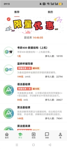3.在【学习】板块当中存在众多不同类型的课程,学生可以依照自身学习需求进行选择,不过部分课程或许需要支付一定费用。