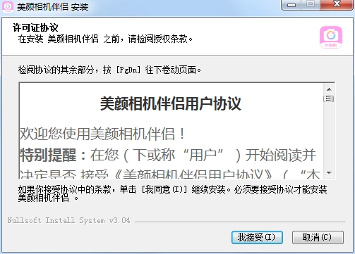 许可证协议,在安装之前,请检阅授权条款,点击我接受按钮继续安装。