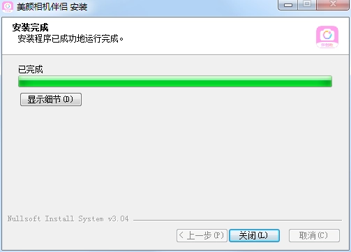 安装完成,安装程序已成功地运行完成,点击关闭按钮,退出此页面。