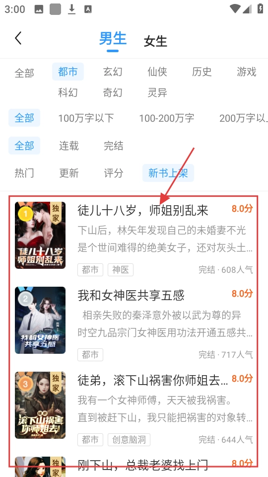 1、在分类页面找到《徒儿十八岁,师姐别乱来》,点击进入,开启小说阅读之旅吧。