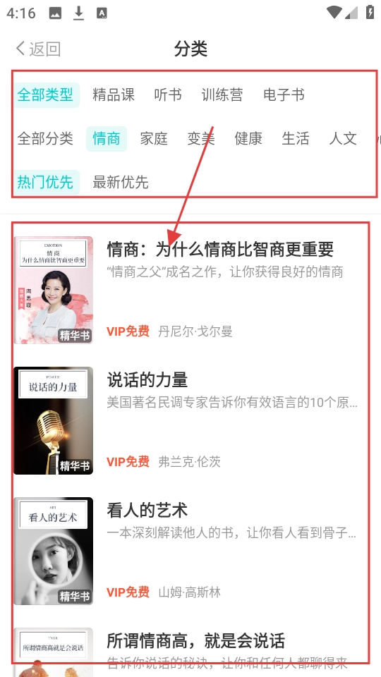 2、到分类页面,能筛选情商类内容,像【情商:为什么情商比智商更重要】这类,看中就点击。
