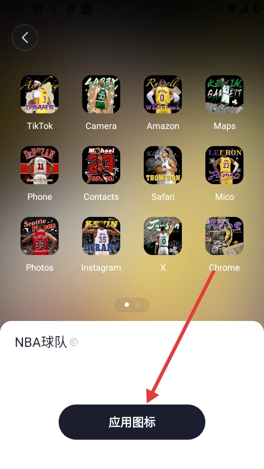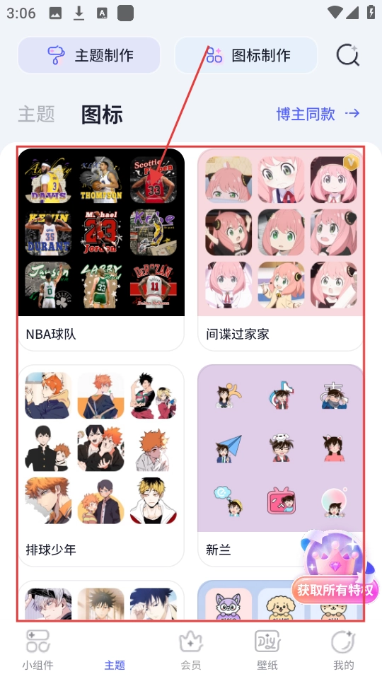2、在图标分类里,有【NBA球队】【间谍过家家】等不同风格的图标包,选一个自己喜欢的点击进去。