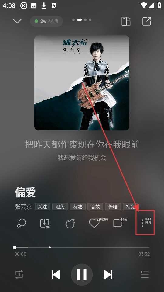2、进入歌曲播放页后,若想查看更多功能,就点击右侧的功能按钮,展开功能选项。