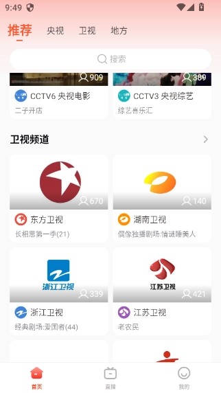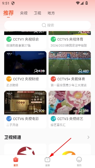 2、点击搜索栏可以查找想要看的频道节目等;