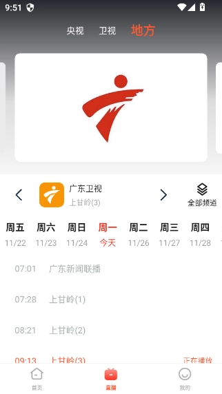 3、直播版块内可以看到当前频道的节目播放单;