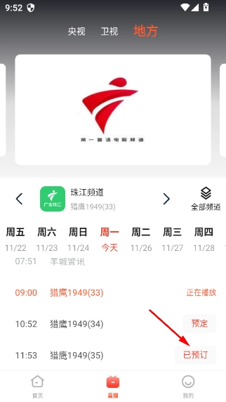 4、最后在我的界面内可以查看观看历史和预定节目等。