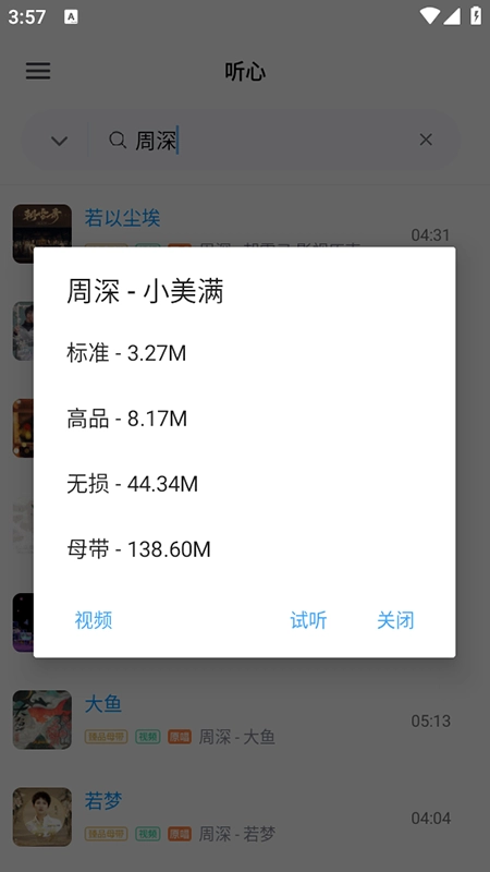 3.如果想歌曲,点击“”,根据需求选择音质,完成后在“我的”中查看