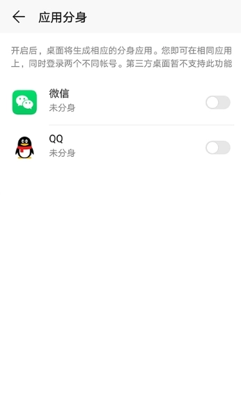 2、可以看到只有微信和qq有分身功能,而没有520浏览器