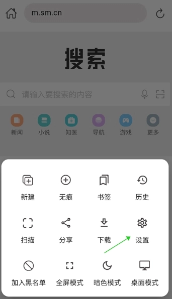 2、在弹出的面板中点击【设置】
