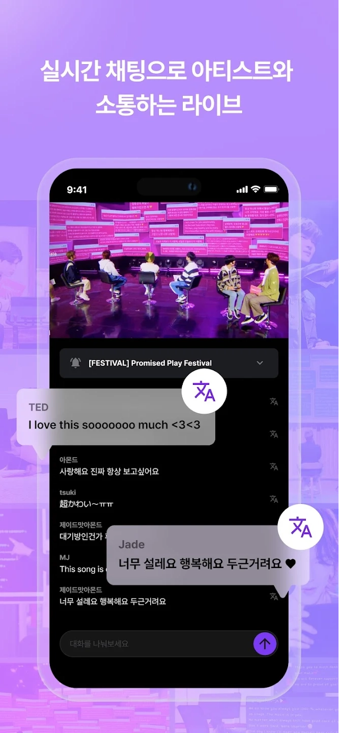 hellolive是一个便捷的韩娱应援平台,能让用户更方便地为喜爱的明星歌手应援。在这里,用户可以随时掌握明星音乐人的演出动态,在线观看音乐直播,还能和众多粉丝交流观看心得,了解更多明星作品,轻松在线查看相关内容。