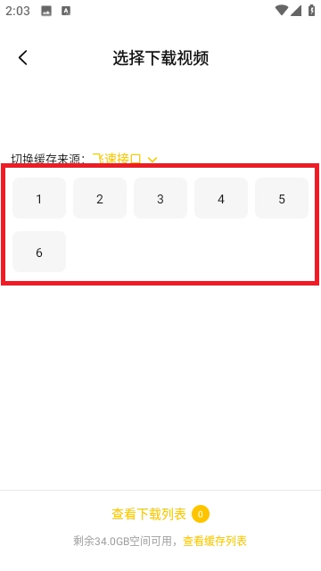4.选择需要缓存的视频或者电视剧集数