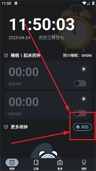 2. 点击首页的“添加”按钮,进入设置新闹钟的页面。