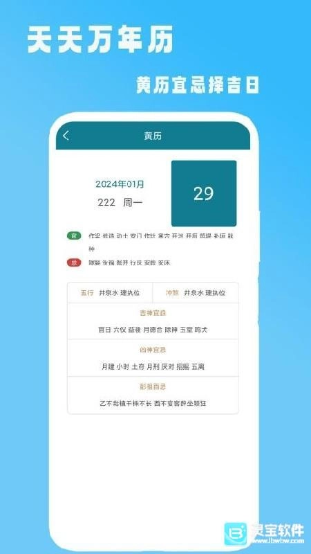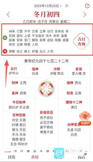 3、吉日择选:完备的万年历系统,涵盖假期、节日、节气、纪念日等各类时间节点。无论是结婚、开市还是旅行,都能从中挑选适宜的日子,助力诸事顺遂。