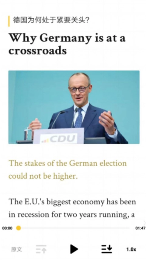 文章选自全球知名外刊和权威媒体,这些文章不仅语言规范,还带有浓厚的西方文化背景,帮助用户在学习英语的同时,还能深入了解西方文化和社会动态。