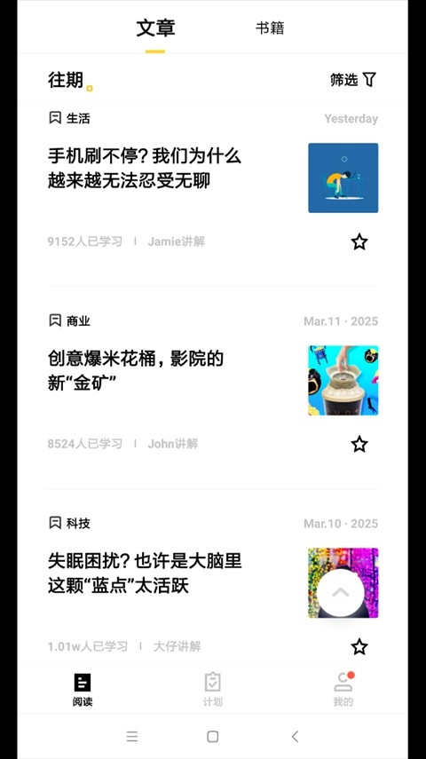 流利说阅读定期为用户推送精选的英文文章,内容涵盖文化、科技、经济、教育、娱乐等多个领域,确保用户接触到最新的知识和语言表达及丰富多样的语言素材。
