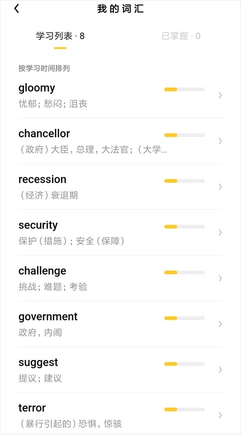 用户能够随时查看与管理个人的生词本,给已经掌握的单词做标记,也可以对还不熟悉的单词进行重复标注。