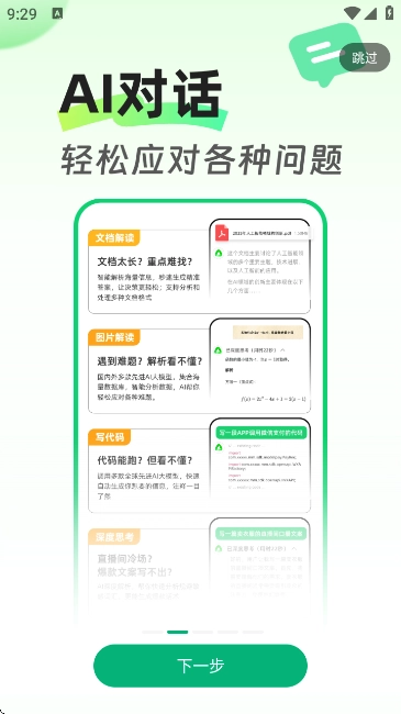 5、AI对话,支持问答、闲聊、头脑风暴、文案生成,还能深度解析文档、图片解读。