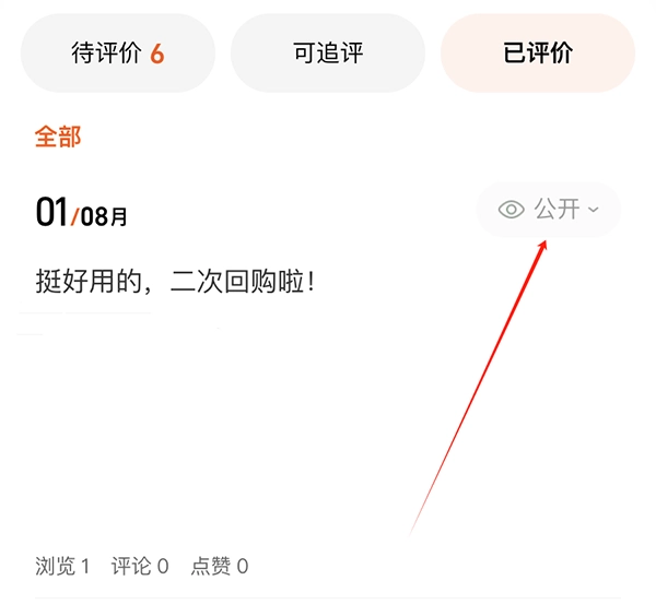 3、点击“公开”,可以对评价进行管理,不是所有评论都可以删除,具体看上方规则哦。