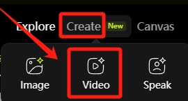 1、启动软件后,点击界面左上角的「创作」按钮,接着在弹出的选项中选择「视频」这一项。