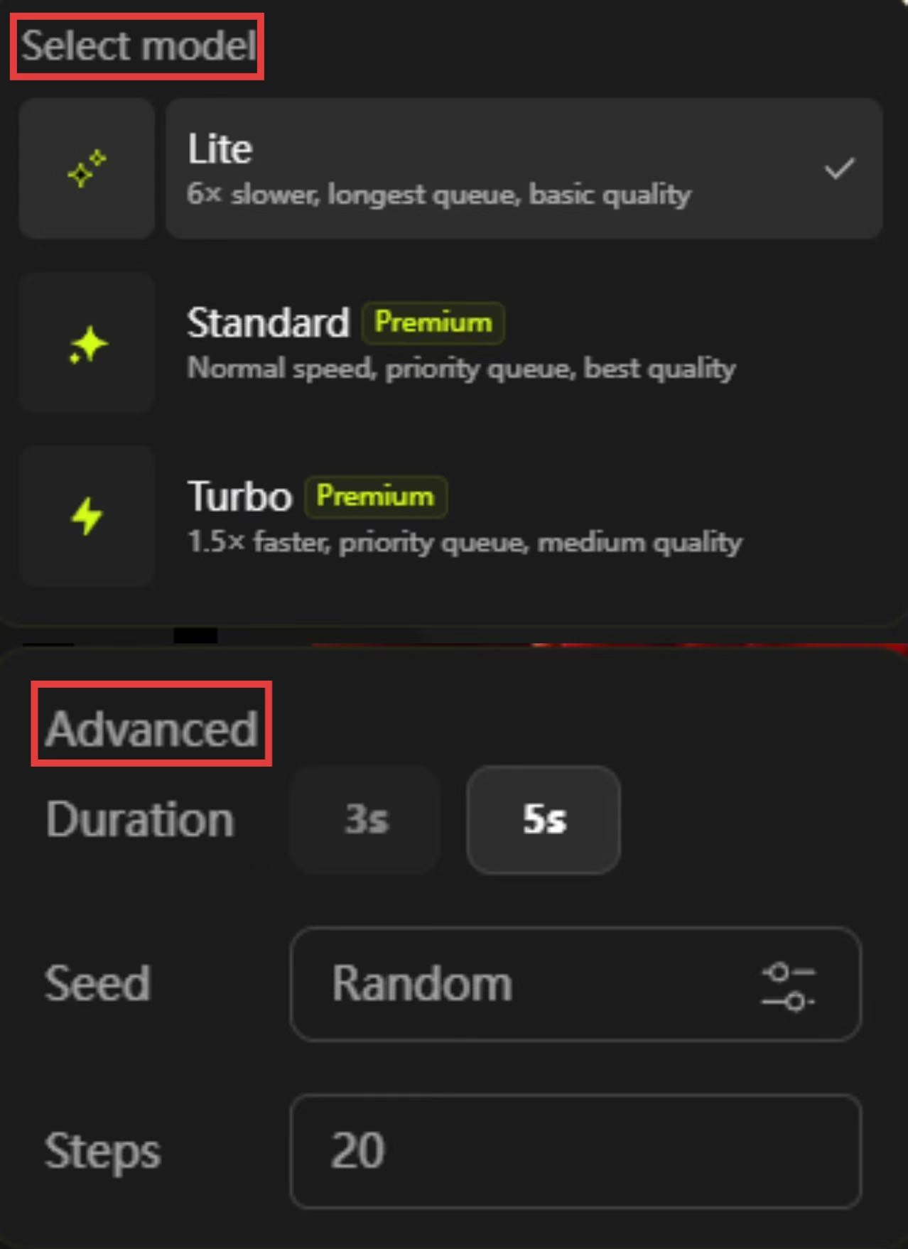 3、自定义生成模型和视频参数(如时长、随机种子等),优化生成效果。