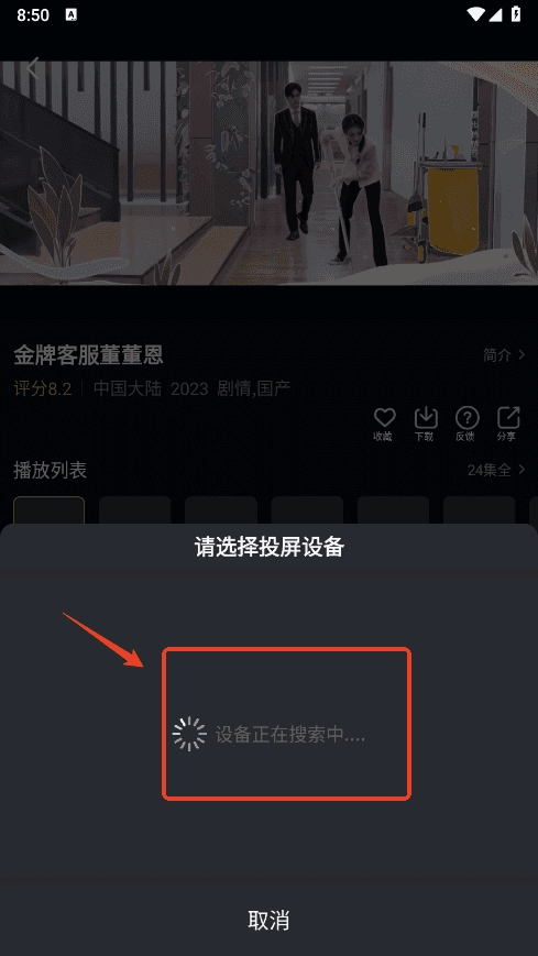 在播放页面,点击右上角图标,可以开始投屏;