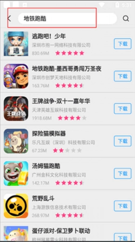 4、例如想地铁跑酷游戏就可以直接打字搜索了,也会同样向用户推荐其他相关好玩的游戏。