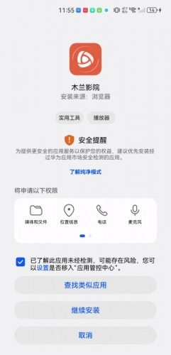 3、点击勾选“已了解此应用未经检测……”,点击“继续安装”。