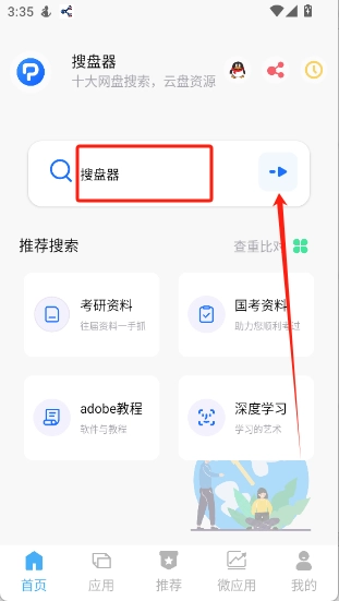 1、接着打开搜盘器,进入到首页