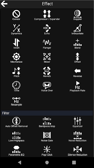 调节低音或高音Equalizer。即使用音量水平也是如此Auto Gain。淡出背景音乐 Voice Over。用哔哔声或其他声音代替Censor。添回声,混响,法兰等等。
