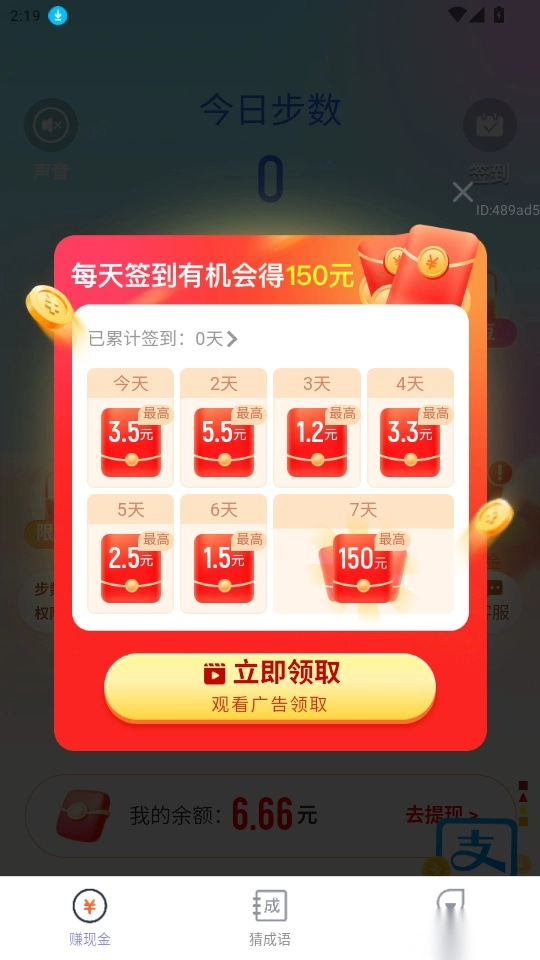 这是一款既有趣又实用的运动赚钱软件,开启步数权限后,它能实时追踪并精准记录用户每日的运动步数,让用户通过运动轻松获取收益。此外,软件还设有猜成语答题的趣味功能,用户可以通过答题的方式轻松赚取零花钱,获得更多红包奖励。