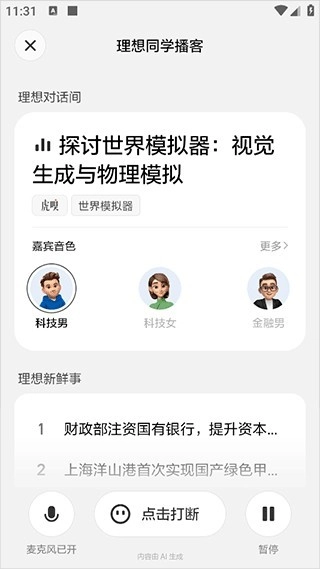 3、播客功能可以对全网热点新闻进行语音播报。