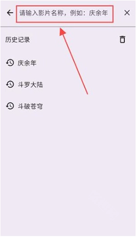 3、点击右上角放大镜按钮进入搜索界面,输入想要看的视频名称搜索;