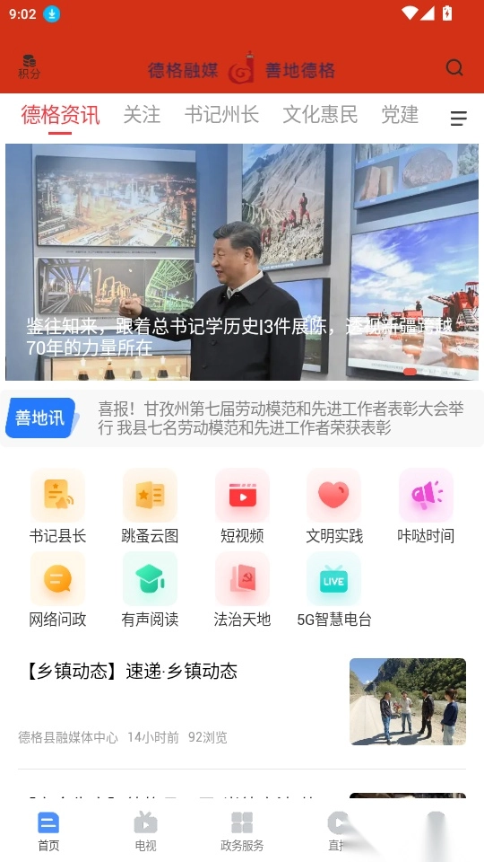 善地德格最新版是一款集新闻资讯、政务服务与便民功能于一体的综合软件。它会实时推送各类本地新闻,方便用户随时掌握本地动态;同时通过电视、直播、图文、短视频等多元形式传播资讯,让大家能从不同渠道快速获取信息,真正实现足不出户了解天下事的便捷体验。在这里随时看新闻,既能拓宽视野、知晓新鲜事,还支持在线问政功能,让用户的诉求得到及时响应和处理。有需要的用户,不妨来善地德格体验使用吧!