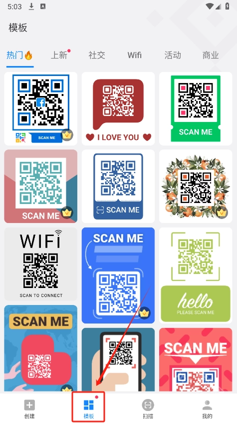 7、点击最下方“模版”界面中给大家提供了各种各样的二维码模版,选择想要的模版就能快速去制作