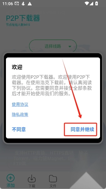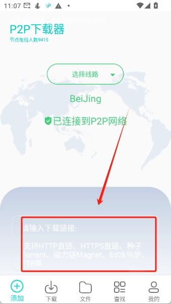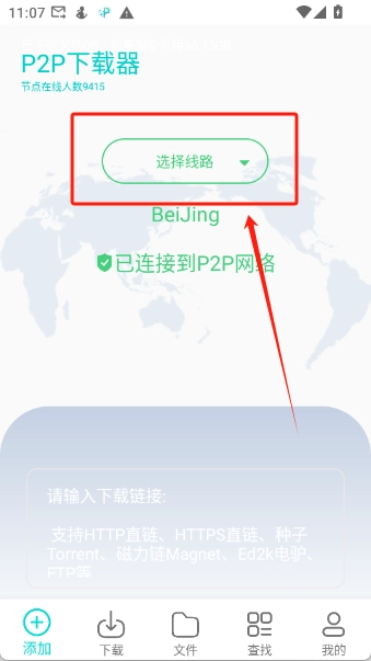 3、选择好线路之后再下方的输入框中输入链接(支持HTTP直链、HTTPS直链、种子Torrent、磁力链Magnet、Ed2k电驴、FTP等)