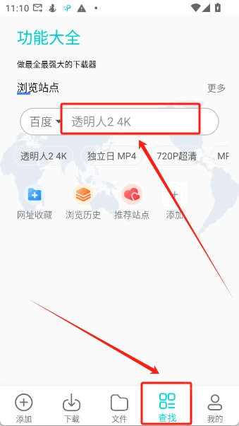 6、输入你想找的内容即可快速跳转至百度搜索界面,从而获取你想要的资源