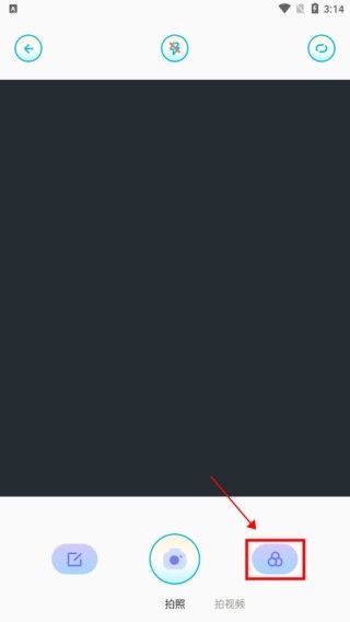 原相机App怎么在拍照的时候添加滤镜?1、打开软件相机功能,点击右下角图示位置;