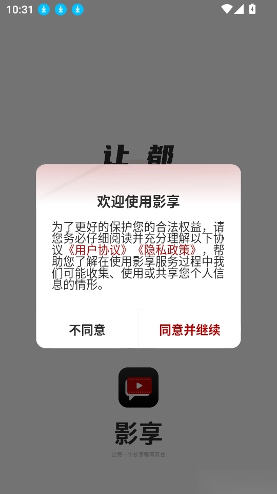 1、首先打开应用点击“同意并继续”按钮进入中。