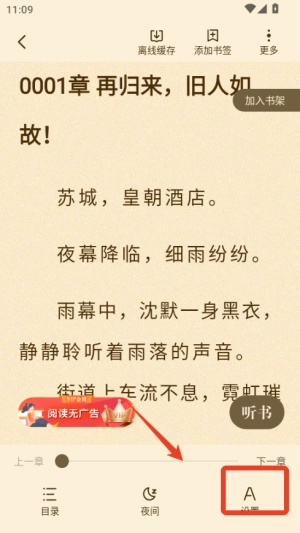 3、在阅读界面调整字体和背景颜色,也可开启夜间模式获得更舒适的视觉体验。