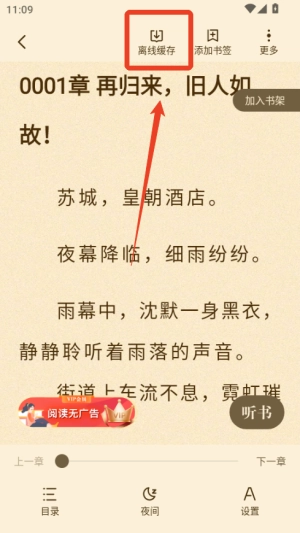 4、如需听书或离线阅读,点击相应按钮即可音频或缓存全文方便随时使用。