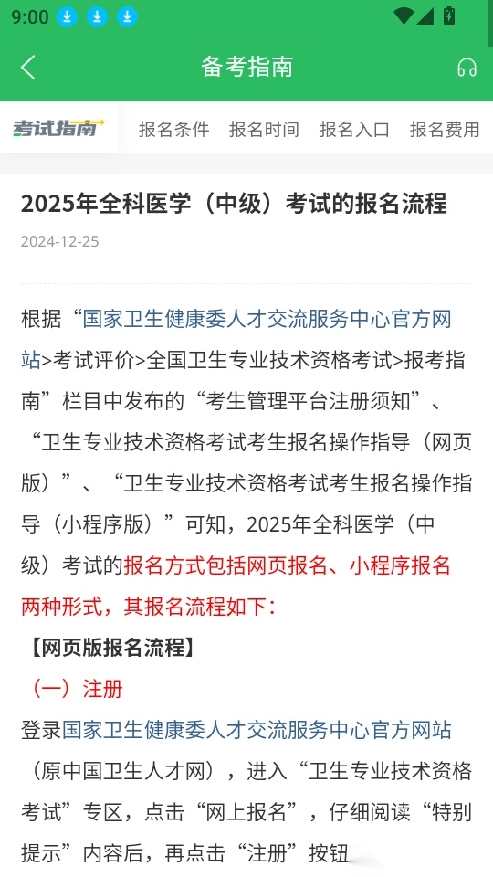 还为用户提供了详细的考试指南,用户可以对相关的考试流程和报名须知进行查看,轻松了解。