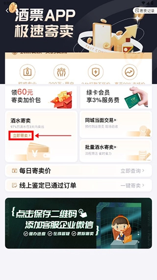 提供酒类寄卖服务,您可通过酒票将存酒快速变现。