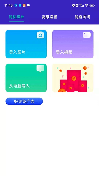 4、导入照片、视频文件保存在手机本地,不上传服务器;