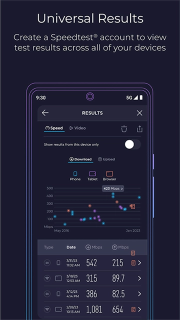 1.Speedtest安卓版的实时图表能够呈现连接的一致性,便于用户直观掌握网络的稳定性。