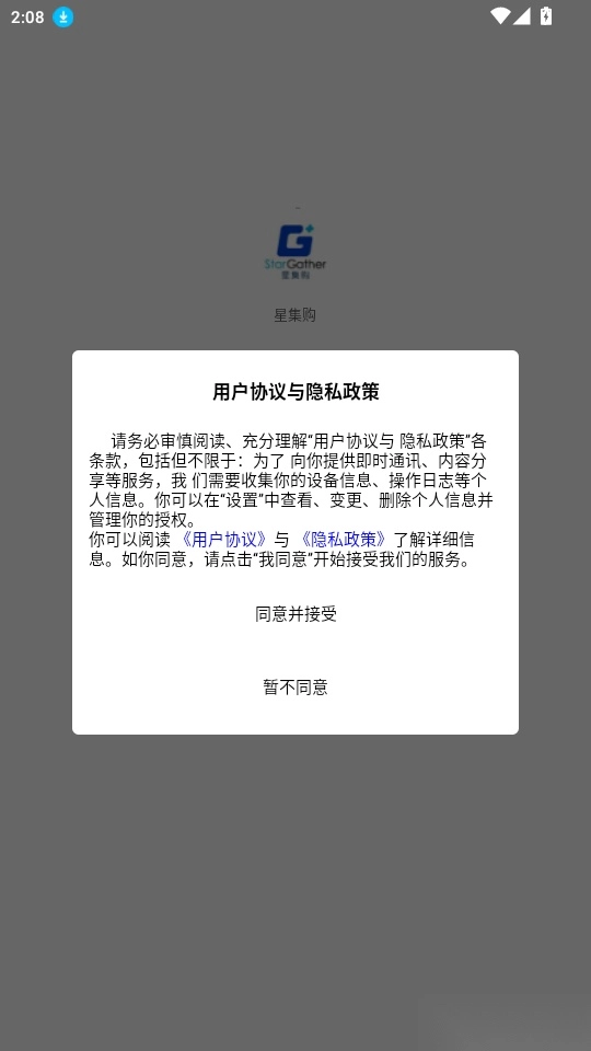 1.打开软件阅读“用户协议与隐私政策”点击“同意并接受”进入
