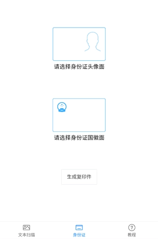 3、再点击【请选择身份证国徽面】,上传国徽页,点击【生成复印件】。