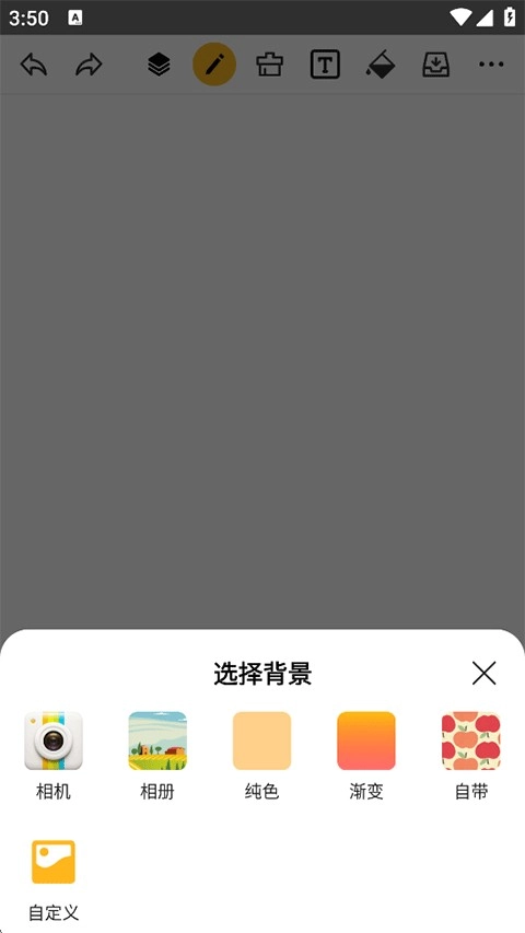 2、选择背景从相册导入、纯色、渐变、自带以及自定义等;