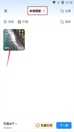 2、选择文件夹,然后选中要压缩的视频;点击【下一步】;