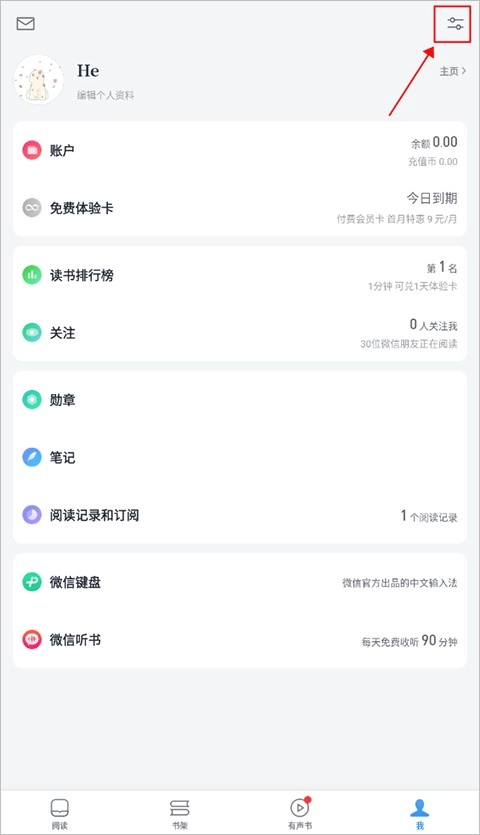 首先在我的界面点击右上角的“设置”按钮。
