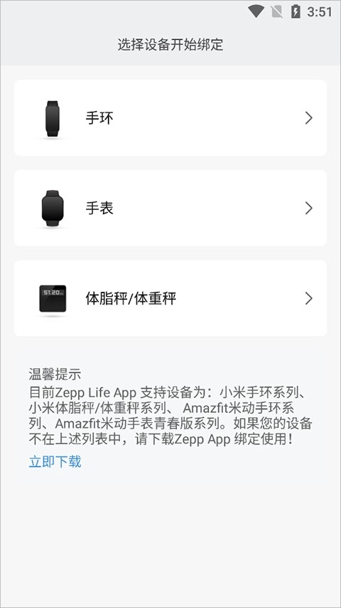 2、在添加设备页面,点击【手环】